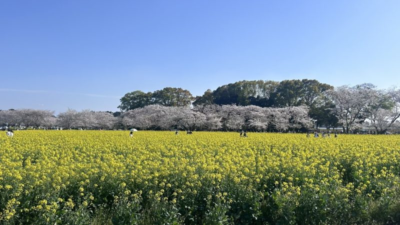西都原の凄さは、なんといってもそのスケール感です。視界いっぱいに広がる菜の花の絨毯と、その上を彩るソメイヨシノ。2026年の花まつり期間中は、夜桜のライトアップや地元の特産品が並ぶ屋台など、五感で春を満喫できるイベントが盛りだくさんです。📸
